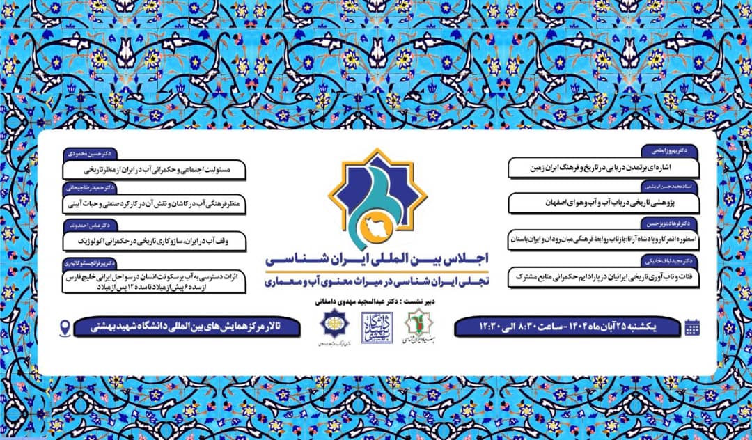 نشست ایران‌شناسی در میراث معنوی آب و معماری امروز با حضور اعضای هیئت علمی، پژوهشگران و مهمانان داخلی و بین‌المللی در دانشگاه شهید بهشتی برگزار شد.