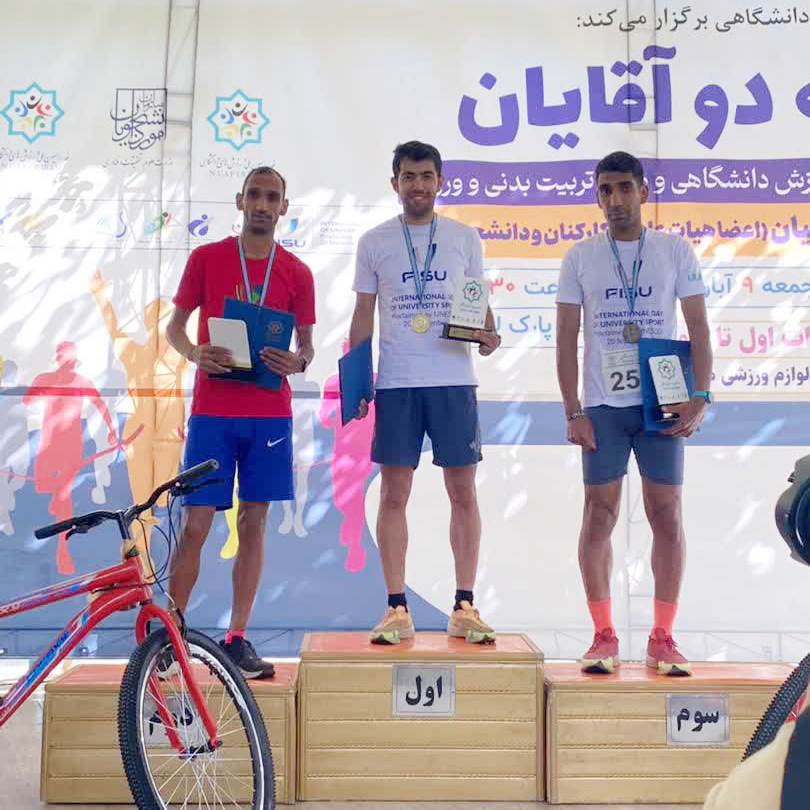 در جریان برگزاری مسابقه دو ۳ کیلومتر بخش آقایان به مناسب روز بین المللی ورزش های دانشگاهی و هفته تربیت بدنی ۹ آبان « منصور بیات » دانشجوی علوم ورزشی دانشگاه شهید بهشتی موفق به کسب مقام دوم شد.